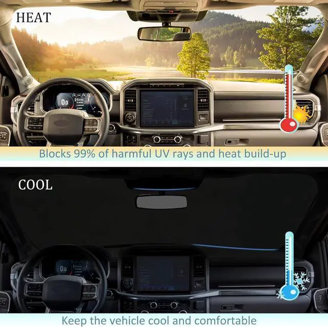 Excellent interior protection: The F150 sunshade can protect the interior of the car from harmful ultraviolet rays and heat, and prevent the steering wheel cover and seat of the instrument dial are aging and fading. It also helps to ensure that your interior maintains its original appearance.