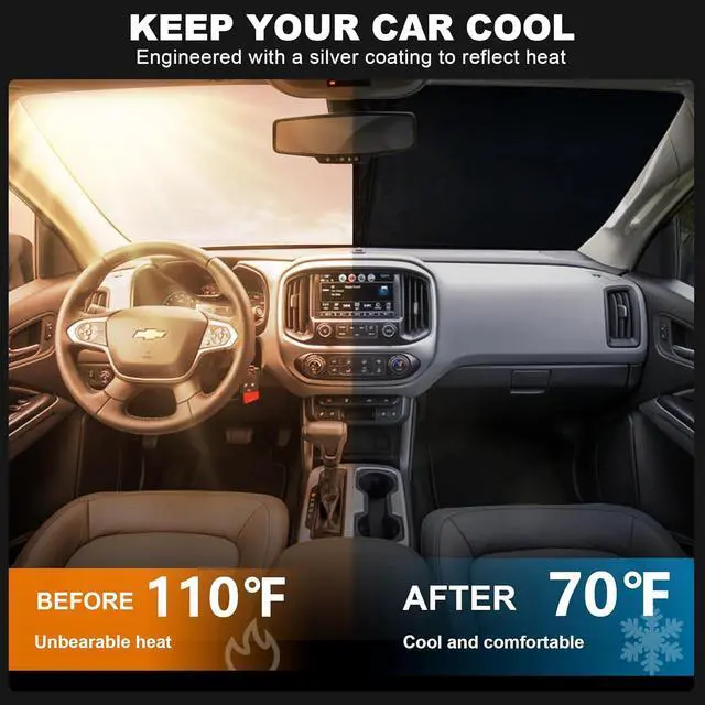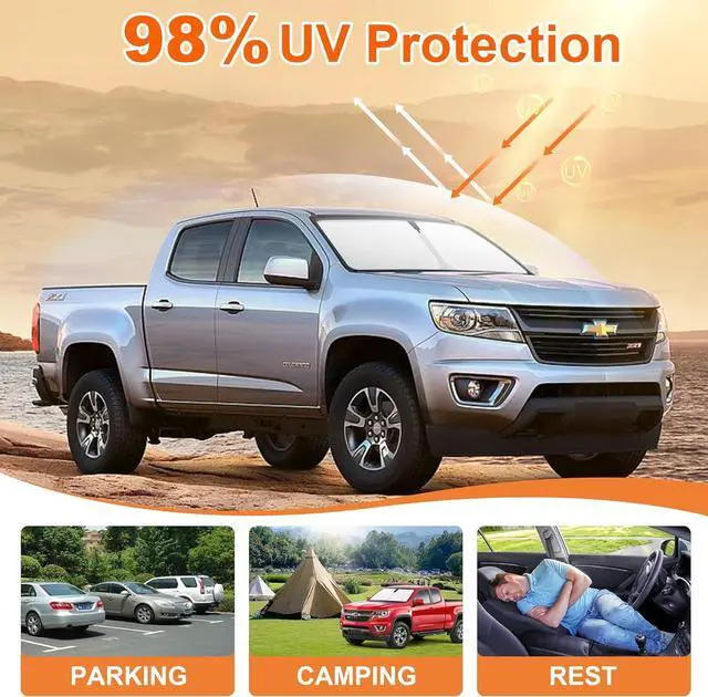 Vehicle SpecificOur car windshield sun shade for Chevy colorado, completely covers the windshield, no gaps, this sunshade specifically designed for Chevrolet colorado Accessories.