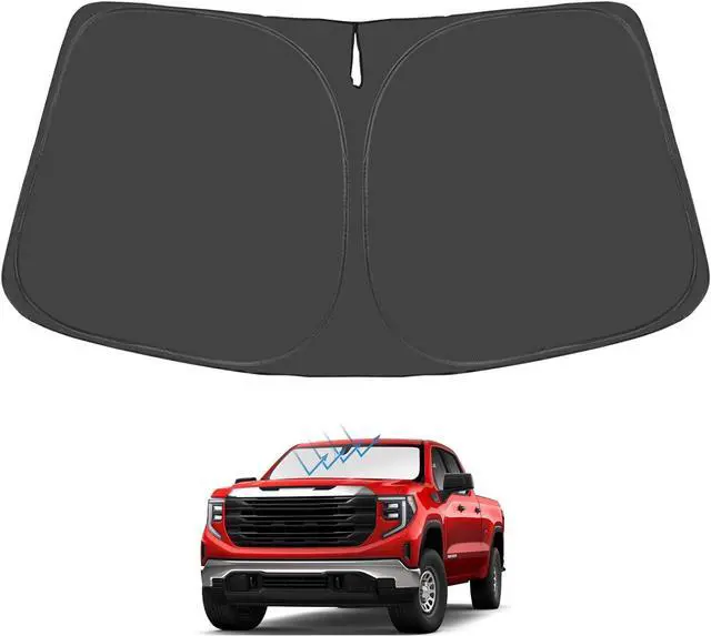 Custom Design: The front windshield shade has been custom cut specifically for GMC Sierra 1500 2500 3500. Precise fit design and Reinforced steel rings make a precise and secure fit to the window, no need to use suction cups to hold it in place. It won' t sag or collapse like other car heat shields. Fits for GMC Sierra 1500 2500 3500 2025 2024 2023 2022 2021 2020 2019.