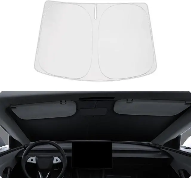 Easy Installation & Store: Just need to fix the Front Sunshade with velcro. Tesla model 3 model y sunshade with shape memory wire, can be easily popped up and folded in seconds for everyday use. The package includes a windshield sunshade, velcro, and zippered storage pouch.