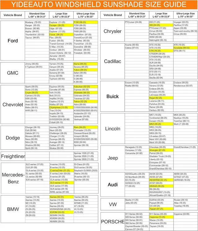 vans. (Please note: Make sure you measure your windshield first to ensure you get the right size. )