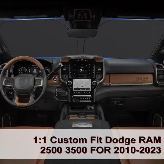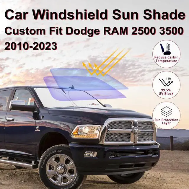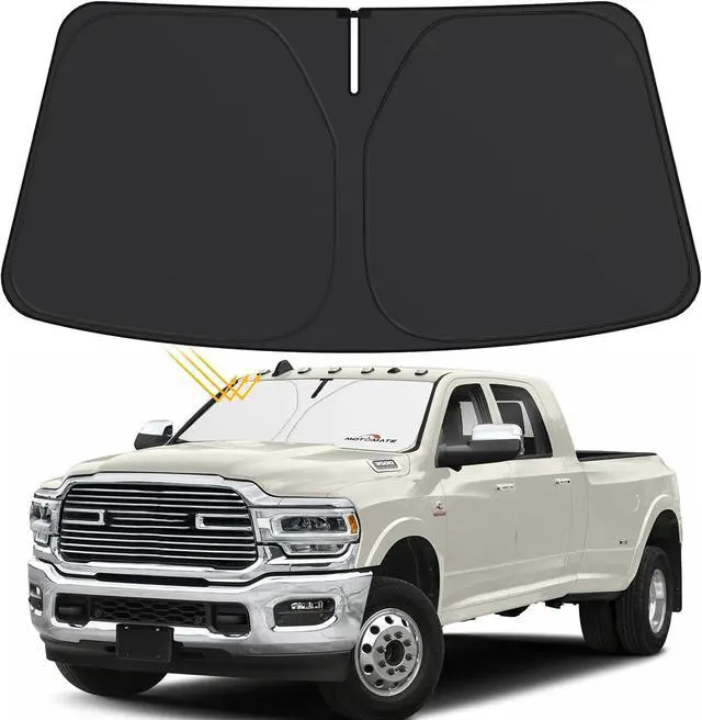 [Upgrade 4 Layers & UV Block Coating] - Custom cut specifically for 2010-2023 Dodge Ram 2500 3500. Precise fit design and Reinforced steel rings make enough to make the shade fit precisely to the window, no need to use suction cups to hold it in place. It won' t sag or collapse like other car heat shields.