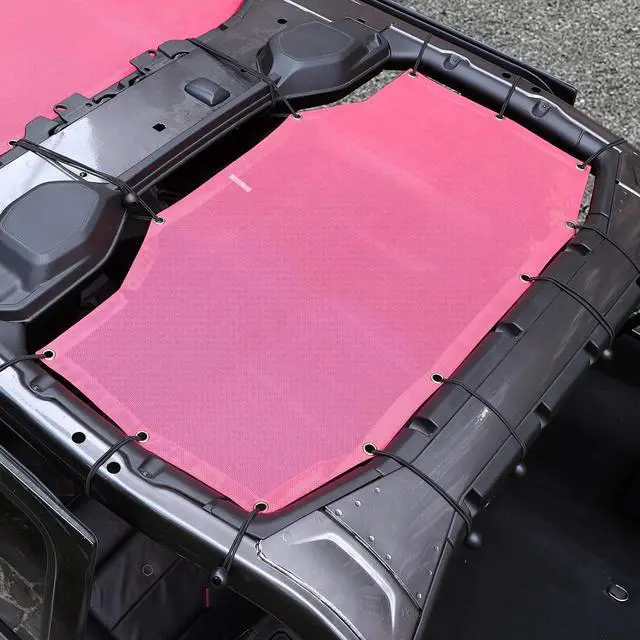 High strength PVC mesh screen, 3 layers folded edge with double-needle stitch sewn, anti-rust copper grommets. No need to remove the sunshade when putting on hardtop