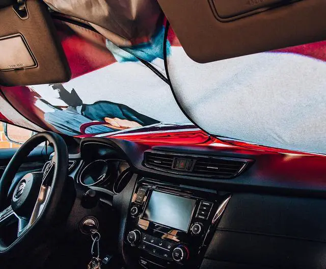 Universal Fit: Measuring approximately 64 x 32 inches, this sun visor is made to fit most cars, trucks, and vans. The foldable design provides extra convenience, allowing you to safely tuck away the sunshade until needed.