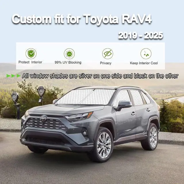 100% Perfect FitThe car window shade is specially designed for Toyota RAV4 2019 2020 2021 2022 2023 2024 2025. No Gap, 100% Perfect fit. The window shades for the car are designed to cover the whole exterior window, Best for baby in the car and overnight car camping essentials. Protect your car from early morning light disturbances and maintain privacy when car camping(Tips: Please confirm the model of your car before ordering).