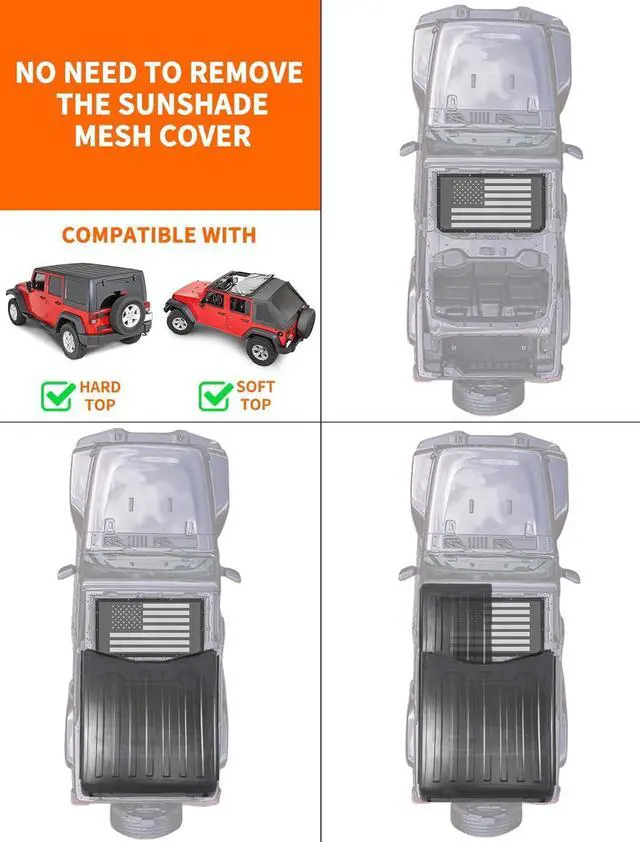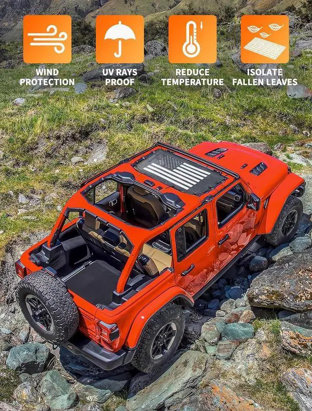 - -- Made from premium, heavy-duty polyester mesh fabric, this Wrangler jl accessories is built to withstand harsh weather conditions and rugged off-road use. It' s tear-resistant, anti-corrosive, and designed to last for years.