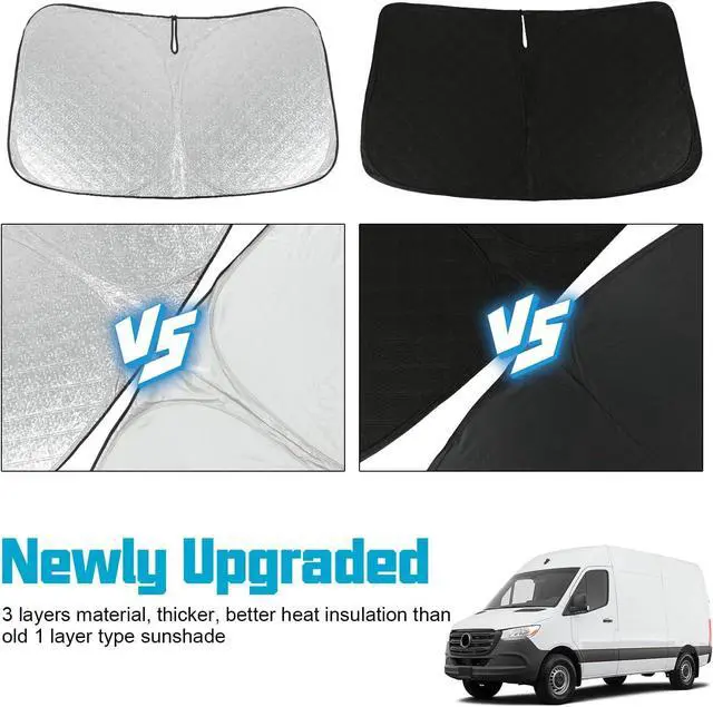 CAR SUN VISOR PROTECTOR: The thickest sprinter windshield sunshade in the market is especially fit the windshield sun visor of Freightliner Sprinter & Mercedes Benz Sprinter 2025 2024 2023 2022 2021 2020 2019 2018 2017 2016 2015 2014 2013 2012 2011 2010 2009 2008 2007. Mercedes sprinter van sunshade with No Gap, prevents over heat penetration causing damage to your steering wheel, windshield dashboard, interior and your car seat.