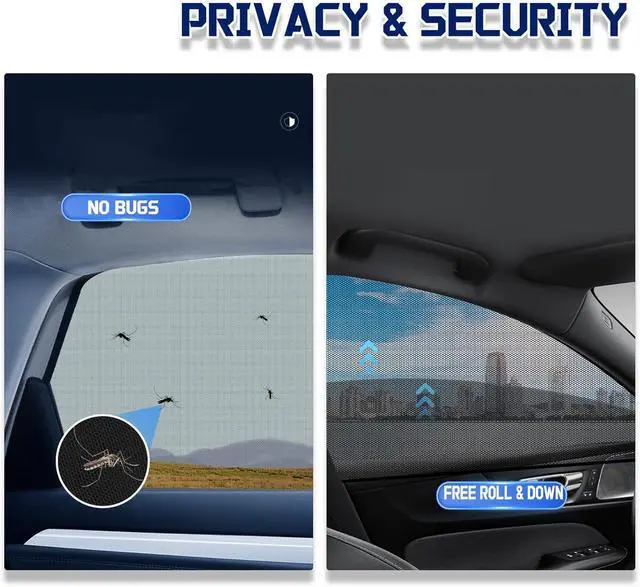 Privacy and Comfort || Because the Stretchy nylon mesh sunshade puts on the door frame, so you can still open or close the windows according to your needs and enjoy a fresh air when family car camping.