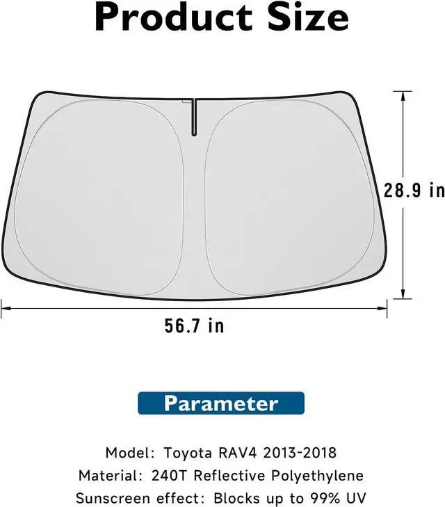 Tailor-Made: This sun shade is uniquely crafted for Toyota RAV4 2013-2018, effectively block heat and sunlight to protect the car dashboard