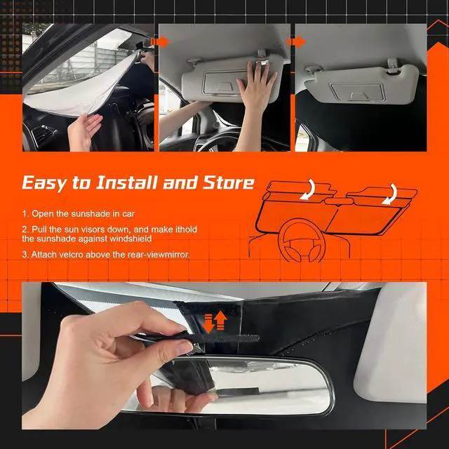 Easy to Install and Store: Effortlessly install and secure the sunshade in place, and conveniently store it when not in use. Its user-friendly design makes it an essential accessory for daily use.