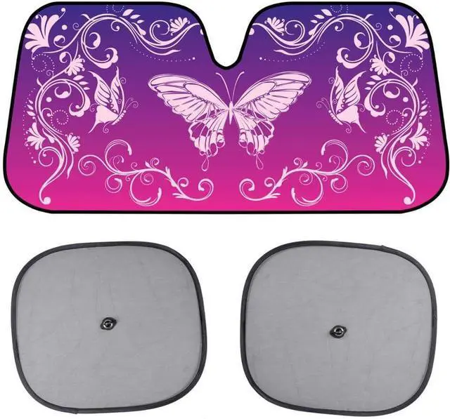 COMFORTABLE COOL INTERIOR: The cute car sunshade and side window shades for baby combo pack is the ultimate solution for parents who want to keep their little one safe, cool, and comfortable during car rides. On a typical sunny day, avoid the extra heat and keep your interior cool with our top quality Windshield Sunshade Protector. Sunshade for car windshield that' s an excellent gift for all automotive types as a cute sunshade for car windshield for women and men. Reduces interior car temperatures by 30-50 degrees. Blocks damaging UV rays; Keeps car cooler on sunny days.