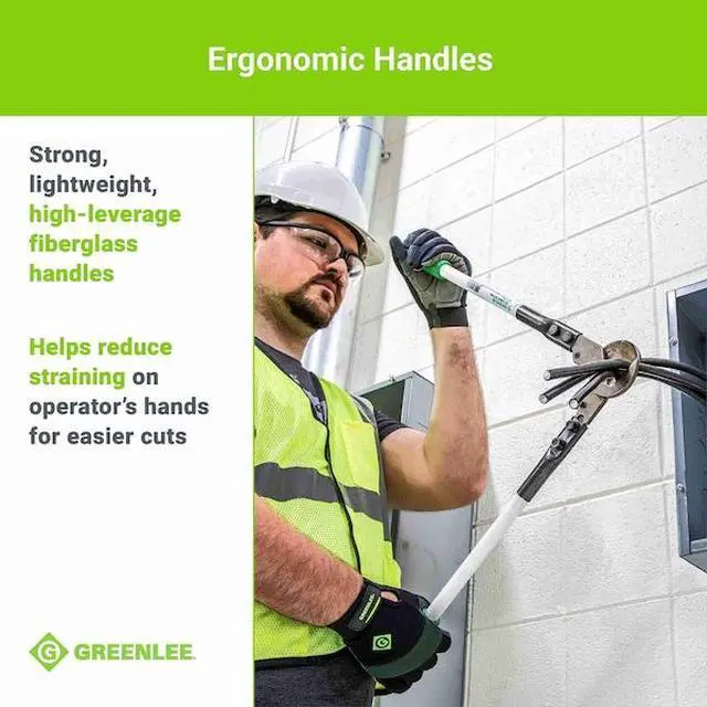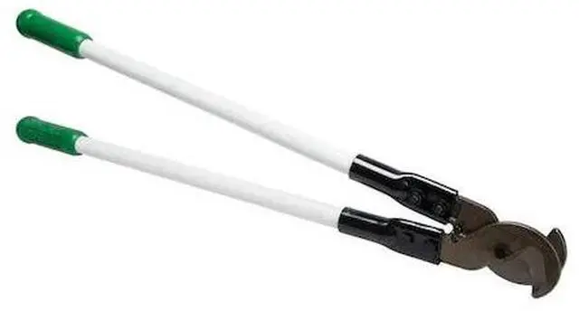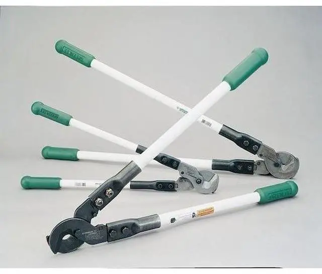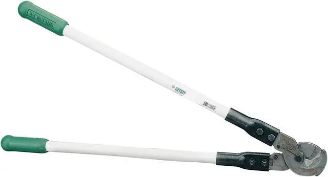 If you need to cut cables, the Greenlee 706 Cable Cutter is the tool for you. This heavy-duty cable cutter can handle 1-1/2" diameter aluminum and copper cables. The center cut action of this 31 1/2 in. cable cutter means that it cuts through all types of cables with ease. It has an adjustable pivot bolt which allows for blade adjustment, ensuring that the blades remain sharp at all times. The cutting capacity for aluminum is 1000 MCM and 750 MCM for copper. With its durable fiberglass handle and center cut action, the Greenlee 706 Cable Cutter will be a reliable addition to your tool box.