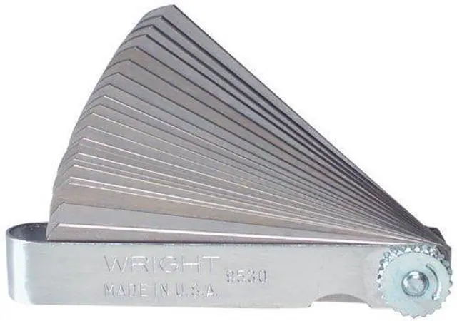 Wright Tool Feeler Gauge Sets Equipped with knurled lock-nut, which releases the blades instantly for rapid selection of size desired. When knurled lock-nut is tightened locks the individual blade into the working position, retaining the blades not in use firmly in the handle. Sizes, both Decimal and Metric are permanently etched on each blade Pack of 1