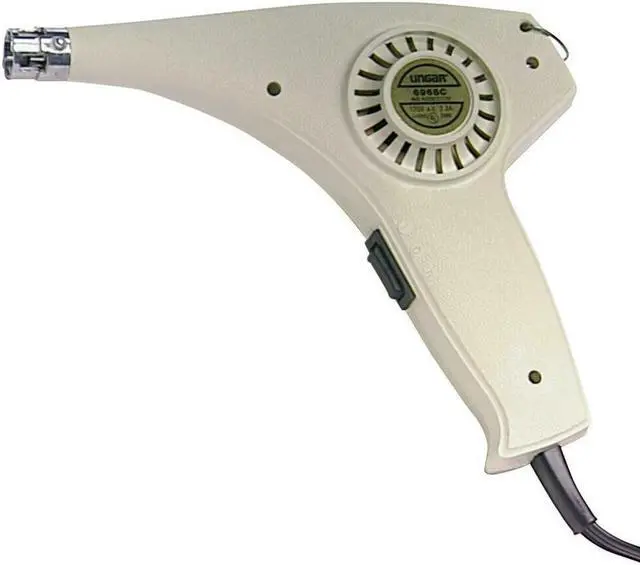 Lightweight Heat Gun, Current @ 120 VAC 2.2 Amps, Air Velocity 500 FPM, Air Volume 2.7 CFM, Temperature Range 550-800 Degrees Fahrenheit, 120 Volts, Included 2.2 Amps @ 120V3 Wire Grounded, 6 ft. Cord, Includes (4) Baffle Adapters Heat GunsLightweightComplete with set of 4 baffle adapters. ESD safe. Oil- and heat-resistant gun with 6-ft. cord and 3-wire grounded plug.