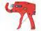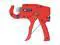 For clean cutting of plastic pipes (e.g. plastic conduit pipes) with 6 - 35 mm dia. Not suitable for cutting cables Blade is replaceable and can be retracted from any position Low force requirement due to special blade geometry and optimum transmission Minimum operator fatigue due to ergonomic handle design and incremental ratchet blade feed Housing: die-cast aluminum, red lacquered