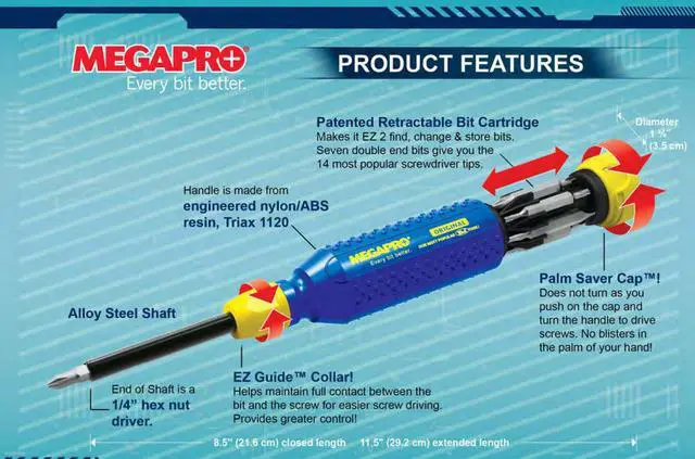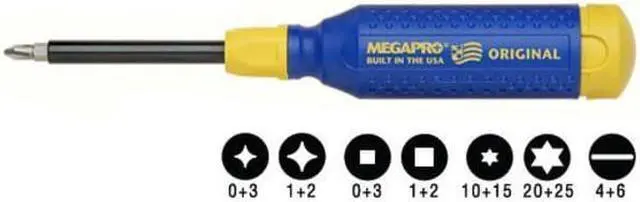The Original Multibit Driver is made in the USA and loaded with 7 double end (14 tips) industrial grade durable S2 Steel bits with a HRC of 60+/-2. - 14 Tools in One! - Made in America - Multi-Trade User Friendly - Palm Saver Cap - Lifetime Warranty
