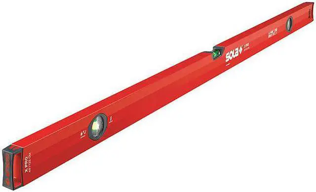 The SOLA LSX48 Box Level is a high-quality tool designed for the job. It features an epoxy coated finish, and has a standard accuracy of less than or equal to 0.5 mm/m. The alloy 6063 aluminum frame provides exceptional durability and makes this box level rust resistant. This 48 in. long box level is easy to read with its top read vials, which are magnified bubbles. There are three vials on this box level, two horizontal and one vertical vial for measuring from side to side and up and down respectively.