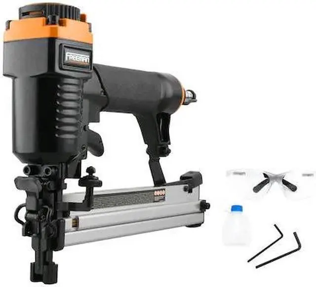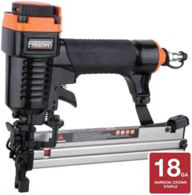 The 1.25in Narrow Crown Stapler is a professional quality, innovated home improvement tool. The Narrow Crown Stapler features an oil-free operation that requires no regular maintenance and eliminates the risk of stains on project surfaces. This crown stapler has a lightweight aluminum design and a tool-free adjustable exhaust that conveniently directs exhaust from your face, quick release nose for easy jamb clearing and tool-free depth adjust. This tool also comes equipped with Non-Stick o-rings, one piece drive blade, air filter, dust cap and dual spring magazine which makes this stapler the obvious choice. The 1.25in Narrow Crown Stapler is great for interior decorative trim, cabinetry, cabinet backing, crafts and hobbies.