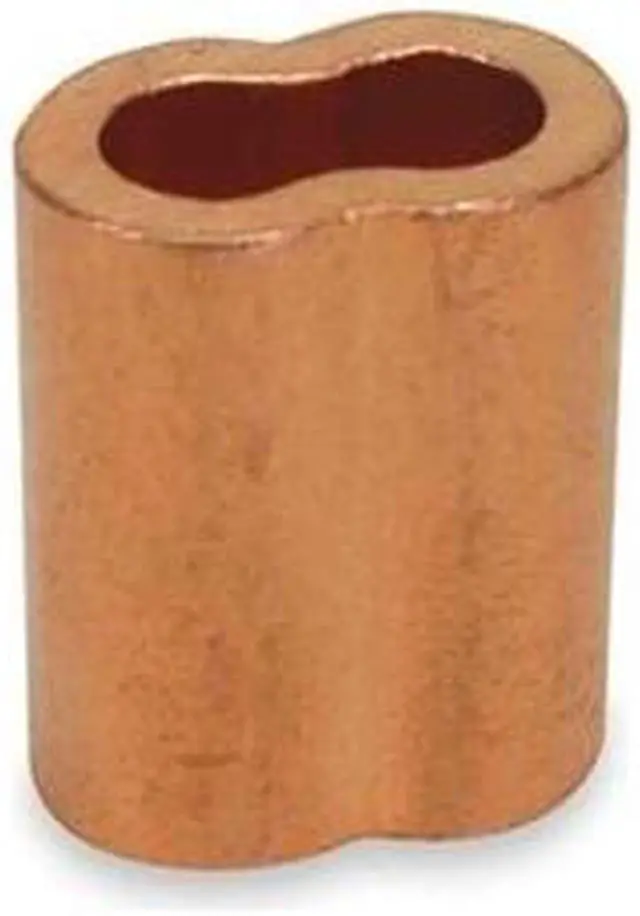 Wire Rope Oval Sleeve, Compatible Rope Diameter 1/16 in, Material Copper, Overall Length 3/16 in, Outside Diameter 3/8 in, Number of Compressions 0, Load Efficiency Rating Not Applicable, Finish Plain, Sleeve Type Oval Sleeve, Fitting Type Swage, Lifting Capability For Lifting, Standards Not Applicable, Package Quantity 25. This item has been restricted from sale in the following state (s): []