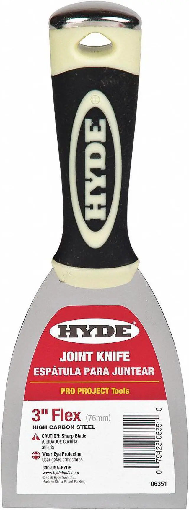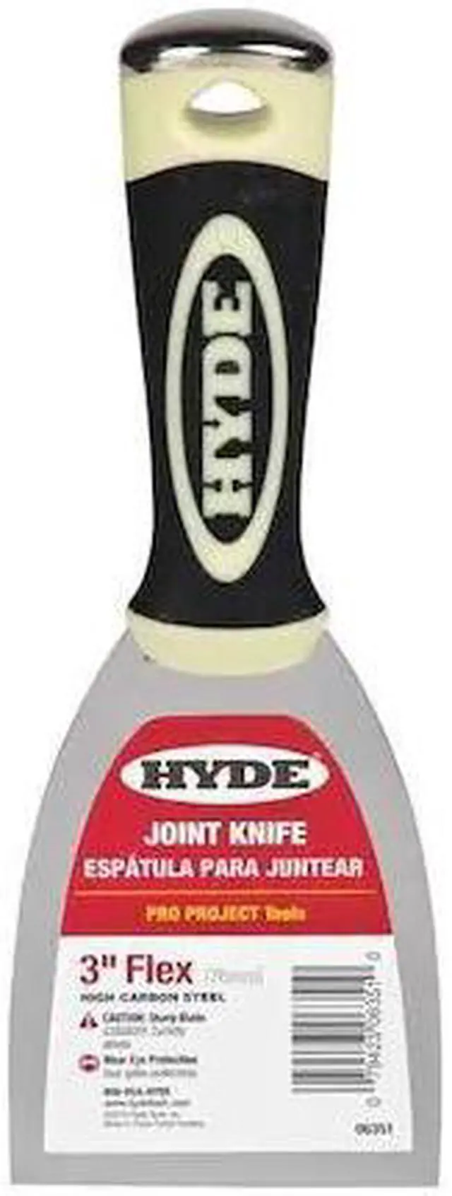 This Hyde 06351 Joint Knife is the ideal tool for cutting small samples from fibrous pieces. The soft grip handle and hammer head end allow you to get a firm hold on the knife while working. This flexible, carbon steel blade is perfect for scraping, spreading or cutting. It has an overmold comfort grip with a 4 in. blade length and 3 in. blade width. You can use this joint knife with ease on any project involving fiber materials. The Hyde 06351 Joint Knife is the perfect tool for anyone who works with fiber materials often.