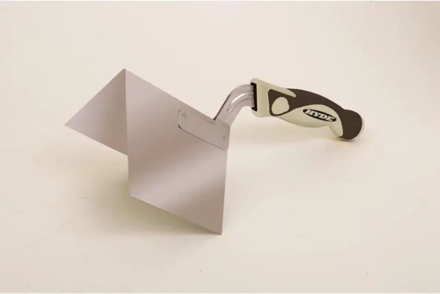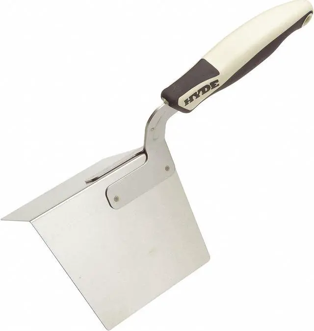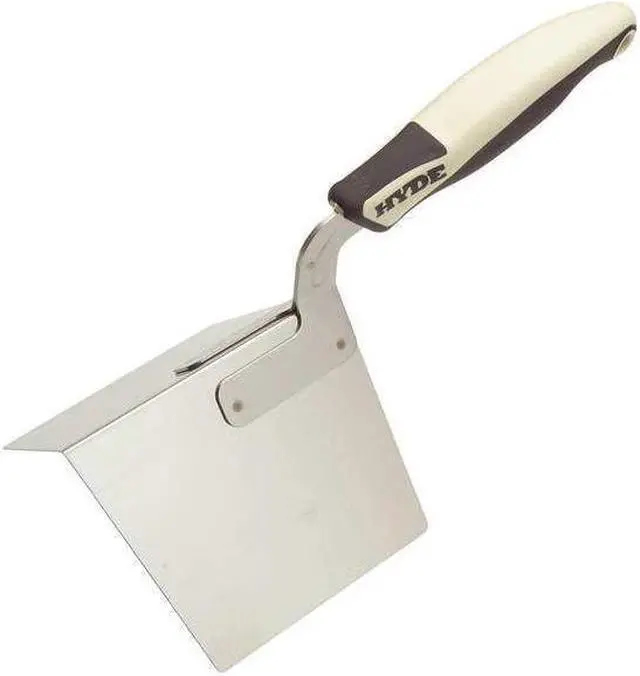 This Hyde 09425 Outside Corner Tool is an essential for finishing drywall. It has a blade that flexes around 90 degrees corners, and allows you to apply joint compound evenly. The outside corner tool features an 80 degree angle blade to flex around 90 degrees corners. Made of stainless steel, the taping tool has a length of 12 in., width of 5 1/4 in., handle length of 5 1/2 in., and blade width of 4 in. It also has a straight handle overmolded with comfortable grip material.