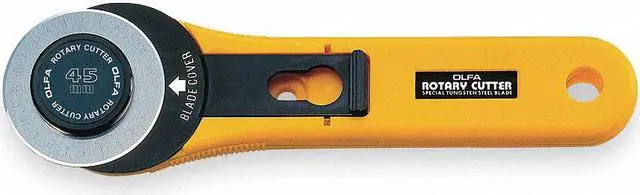 Rotary Cutter, Overall Length 6-3/4 In., Overall Width 1-13/16 In., Overall Thickness 1/2 In., Blade Change Threaded, Blade Dia. 45mm, Blade Material Tungsten Carbide Tool Steel, Handle Type Straight, Number of Blades Included 1, Application For Cut Materials into Shapes, Strips and Pieces, Features Plastic Blade Cover, Includes -. This item has been restricted from sale in the following state (s): []