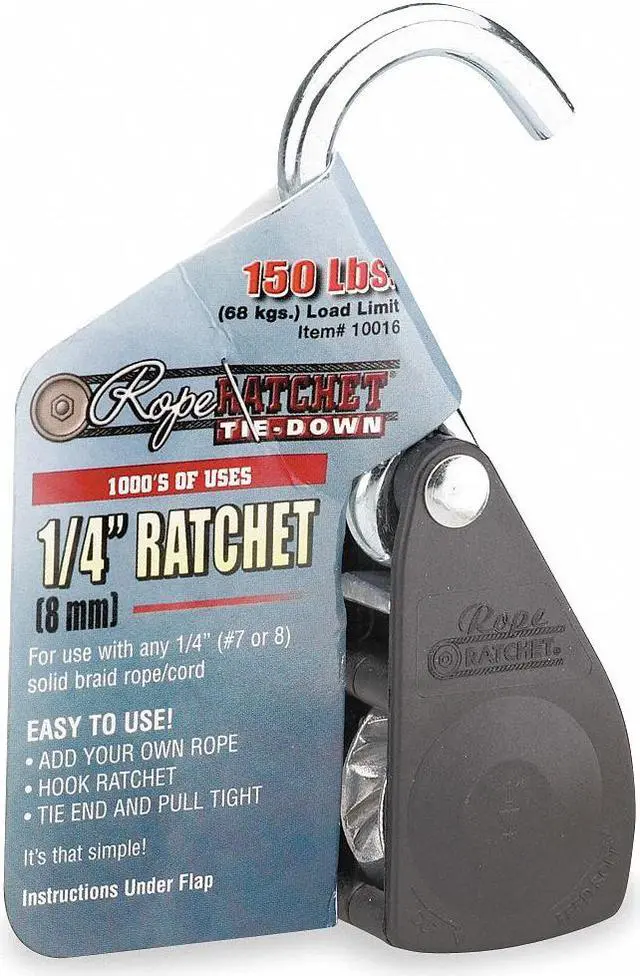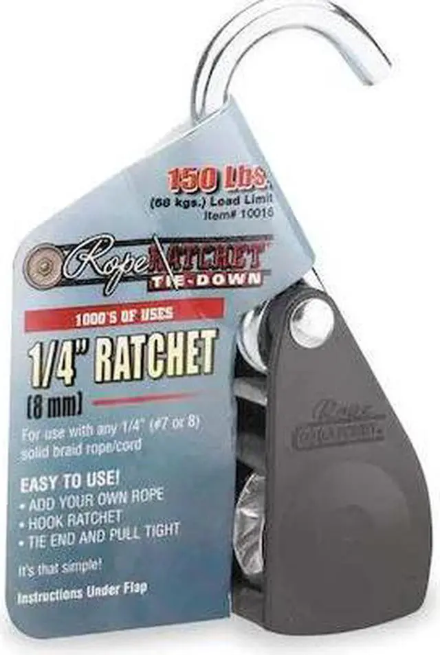 Rope Ratchet, Color Black, Compatible Rope Diameter 1/4 in, End Type S-Hook, Includes Rope Ratchet, Material Steel, Overall Length 5 1/8 in, Product Type Rope Ratchet, Working Load Limit 150 lb. This item has been restricted from sale in the following state (s): []