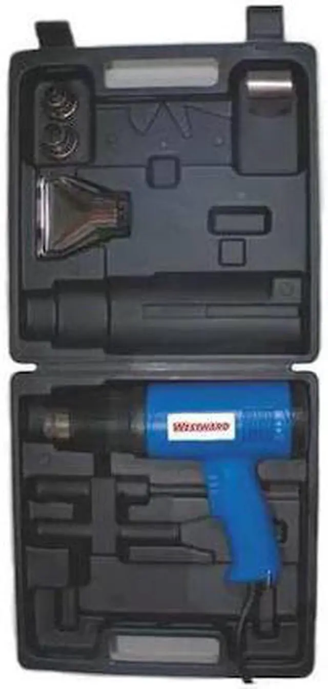 California Proposition 65: This product contains a chemical known to the State of California to cause birth defects or other reproductive harm. Heat Gun Kit, Heat Gun Handle Style Pistol, ESD Safe No, Surface Temperature Control Yes, Voltage 120V AC, Plug Type Two-Prong, Temperature Settings Variable, Maximum Temperature 1, 000 Degrees F, Minimum Temperature 250 Degrees F, Temperature Range 250 Degrees to 1, 000 Degrees F, LCD Display No, Current 10 A, Kit Contents (1) Bare Tool, (4) Attachments, Tool Brand Westward, Air Volume 9 cfm, Nozzle Outside Diameter 1 1/4 in, Brushless Motor No, Shrink Wrap Material Thermoplastic. This item has been restricted from sale in the following state (s): []