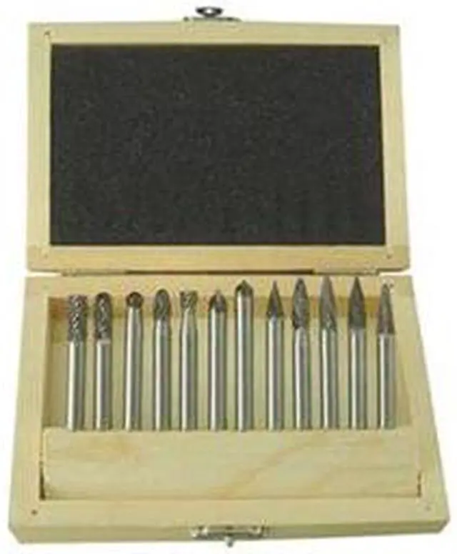 Carbide Bur Set, Cut Type Double Cut, Head Shape Ball, Cone, Cylinder, Flame, Inverted Cone, Oval, Tree, Round Nose Tree, Head Diameter - Maximum 1/4 in, Head Diameter - Minimum 1/4 in, Number of Pieces 12, Primary Material Application Brass, Bronze, Copper, Nickel, Titanium, Zinc, Trade Number SA-1, SC-1, SD-1, SE-1, SF-1, SG-1, SH-1, SJ-1, SK-1, SL-1, SM-1, SN-1, End Type Flat, Pointed, Radius, System of Measurement Inch, Head Dia.