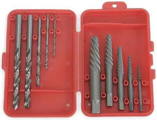Screw Extractor Set, Extractor Type Spiral Flute Extractor, Number of Pieces 10, For Bolt Size 3/32 in to 5/8 in, Material - Machining Carbon Steel, Overall Length 2 in, 2 9/32 in, 2 13/32 in, 2 19/32 in, 2 15/16 in, 3 1/32 in, 3 7/32 in, 4 in, 4 1/8 in, Container Type Index Case, Drive Size 0.118 in, 0.157 in, 0.197 in, 0.264 in, 0.335 in, Drive Type Square. This item has been restricted from sale in the following state (s): []