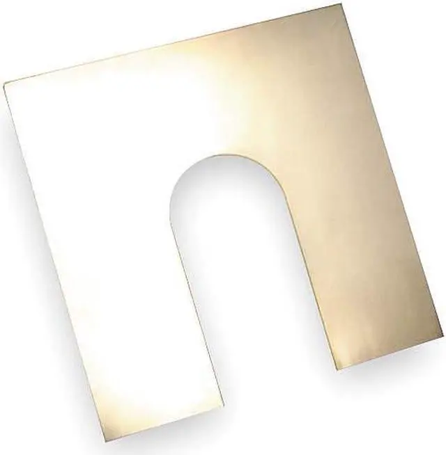 Slotted Shim, Untabbed, 0.075 In. Thk, PK10, Slotted Shim Type Untabbed, Trade Size E, Shim Length 6 in, Shim Width 6 in, Thickness 0.075 in, Slot Width 2 in, Slot Depth 4 in, Tab Height Not Applicable, Tab Width Not Applicable, Thickness Tolerance +/- 0.002 in, Length Tolerance +/- 0.015 in, Width Tolerance +/- 0.015 in, Material Stainless Steel, Material Grade/Class 18-8, Finish Plain, Temper Soft (Annealed), Color Silver, Product Type Shim Replacement Packs, Application Used for Spacing.