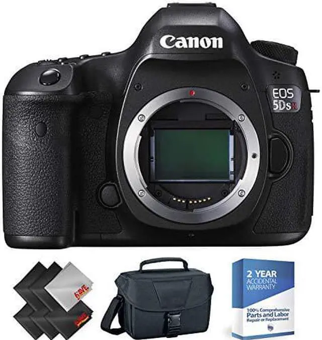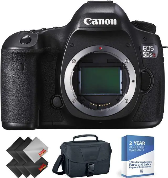 Only) Overview: Providing the full resolving power of its new sensor, the EOS 5DS R DSLR Camera from Canon is a variant of the 5DS with the sensor's low-pass filter rendered neutral. By cancelling the effect of the filter, the 50.6MP sensor is enabled to deliver an even higher resolution with more intricate details. The potential downside to this is that the cancellation function brings with it the greater possibility of moir' and other color artifacts. This is a camera for those interested in the utmost resolution from the sensor and the ability to control color artifacts either in-camera or with post-processing software. 50.6MP Full-Frame CMOS SensorDual DIGIC 6 Image ProcessorsLow-Pass Filter Effect Cancellation 3.2" 1.04 m-Dot ClearView II LCD MonitorWhat's In The Box: Canon EOS 5DS R DSLR Camera (Body Only) LP-E6N Lithium-Ion Battery Pack ( 7.2V, 1865mAh)LC-E6 Charger for LP-E6 Battery PackIFC-150U II USB 3.1 Gen 1 Interface Cable for DSLRsEyecup EgRF-3 Body Cap for Canon EOS CamerasWide Strap EW-EOS5DSRCable ProtectorEOS DIGITAL Solution DiskLimited 1-Year