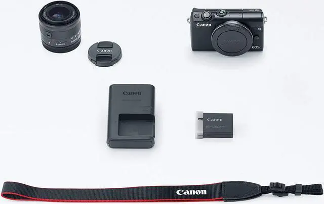 Compact and lightweight, the black Canon EOS M100 Mirrorless Digital Camera makes a suitable everyday companion for those who want both an easy-to-use and highly capable camera system. With built-in Wi-Fi, NFC, and Bluetooth, the 24.2MP APS-C camera makes it easy to share your snaps and videos almost immediately after you take them. For those looking to expand their photography skills this camera is a great stepping off point as it has a Creative Assist feature that can walk you through how certain settings affect your image. Or, if you simply want to capture your grand adventures with your friends, a Self Portrait mode is available for making use of the 180 tilt ability of the 3.0" 1.04 m-dot touchscreen LCD.