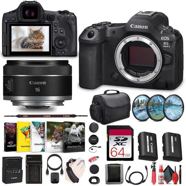 Designed for professionals in photography and videography, the Canon EOS R5 Mark II Mirrorless Camera offers outstanding performance with a 45MP full-frame CMOS sensor that captures stunningly detailed images and vibrant 8K video. Powered by the DIGIC X processor, it delivers fast continuous shooting at up to 20 frames per second, perfect for action and wildlife photography. The advanced Dual Pixel CMOS AF II system ensures precise autofocus with eye, face, and animal detection, even in fast-paced situations. With 5-axis in-body image stabilization, the R5 Mark II enables smooth handheld shooting for both stills and video.
