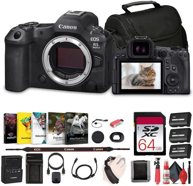 Designed for professionals in photography and videography, the Canon EOS R5 Mark II Mirrorless Camera offers outstanding performance with a 45MP full-frame CMOS sensor that captures stunningly detailed images and vibrant 8K video. Powered by the DIGIC X processor, it delivers fast continuous shooting at up to 20 frames per second, perfect for action and wildlife photography. The advanced Dual Pixel CMOS AF II system ensures precise autofocus with eye, face, and animal detection, even in fast-paced situations. With 5-axis in-body image stabilization, the R5 Mark II enables smooth handheld shooting for both stills and video.