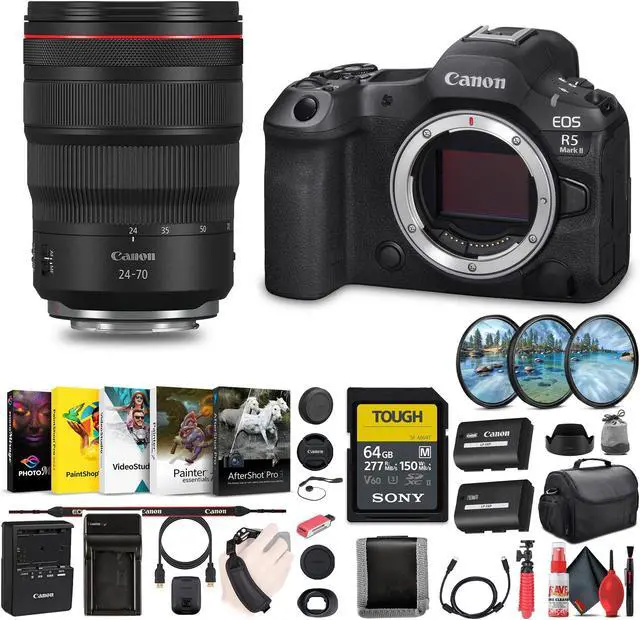 Designed for professionals in photography and videography, the Canon EOS R5 Mark II Mirrorless Camera offers outstanding performance with a 45MP full-frame CMOS sensor that captures stunningly detailed images and vibrant 8K video. Powered by the DIGIC X processor, it delivers fast continuous shooting at up to 20 frames per second, perfect for action and wildlife photography. The advanced Dual Pixel CMOS AF II system ensures precise autofocus with eye, face, and animal detection, even in fast-paced situations. With 5-axis in-body image stabilization, the R5 Mark II enables smooth handheld shooting for both stills and video.