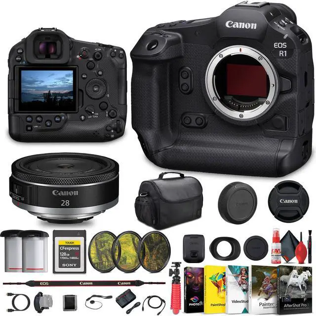 The camera's 9.44 m-Dot EVF with OVF Simulation View Assist and 3.0" Touchscreen LCD offer a clear, customizable view, enhancing your shooting experience from various angles. Designed for rigorous professional use, the EOS R1 includes a vertical grip and dual CFexpress Type B slots, ensuring extended shooting capacity and reliable data storage. Built for professionals who push the boundaries, the Canon EOS R1 is the ultimate tool for both photographers and videographers seeking excellence in every shot, whether in the studio or out in the field.