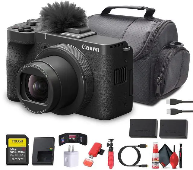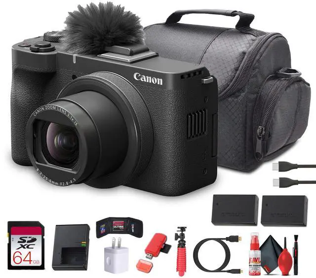 The Canon PowerShot V1 is a compact, lightweight digital camera created for vlogging, live streaming, and daily documentation. Its 1.0 -inch sensor delivers detailed images and 4K video, while a flip screen and built-in stereo mic make it perfect for solo creators. With smart autofocus that tracks faces and movement, it's easy to stay sharp on-camera. Whether you're filming for YouTube, TikTok, or your next IG story, this camera gives you pro-quality features in a pocket-sized design thats ready to travel.