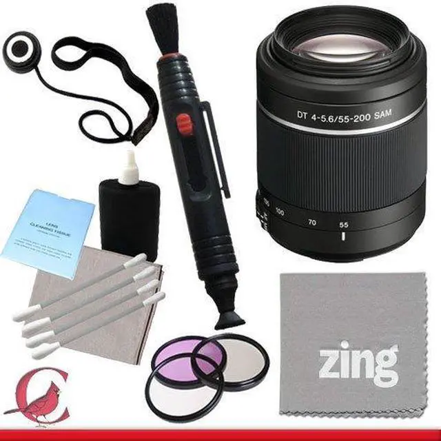 The 55-200mm f/4.0-5.6 DT Alpha A-Mount Telephoto Zoom Lens from Sony is a DT-series Sony Alpha lens that has been optimized for cropped image sensors, and as a result it is not recommended for use with larger full-frame cameras. It's 55-200mm focal length is the 35mm equivalent of a long 82.5-300mm telephoto lens. It is constructed of 13 elements in 9 groups, as well as Extra-low Dispersion (ED) glass, which all help to deliver sharp, clear photos throughout the zoom range. It has a minimum focusing distance of 3.2' and a front-end filter diameter of 55mm.