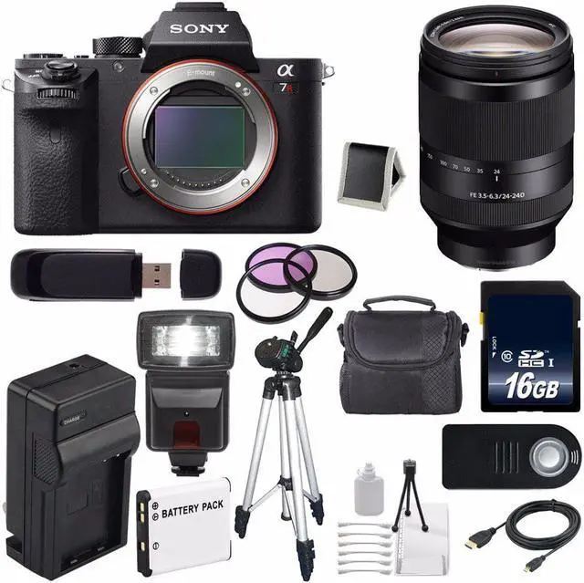 Bundle includes: 1- Sony a7R II Digital Camera (Body Only) 1- Sony FE 24-240mm f/ 3.5 - 6.3 OSS Lens1- 16GB SDHC Class 10 Secure Digital High Speed Memory Card1- Full Size Tripod W/Carry Bag (Keep it Steady! )1- 72mm 3 Piece