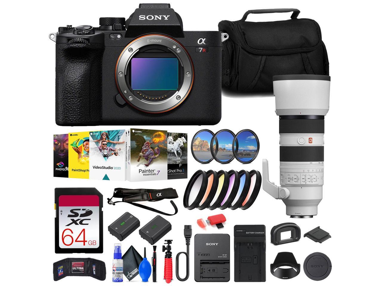 - Bundle Items Include: 1 x Sony a7R V Mirrorless Camera, 1 x Sony FE 70-200mm f/2.8 GM OSS II Lens, 1 x Sony 64GB SF-M Tough Series UHS-II SDXC Memory Card, 1 x 3 Piece Filter Kit, 1 x Graduated Color Filter Kit, 1 x Corel Photo Software With PhotoMirage, AfterShot, Painter Essentials, PaintShop Pro, and Video Studio, 1 x Soft Bag, 1 x NP-FZ100 Battery, 1 x NP-FZ100 charger, 1 x Memory Card Reader, 1 x 12_inch Flexible Tripod, 1 x Memory Card Wallet, 1 x Cleaning Kit. A whole new level of camera intelligence - State-of-the-art AI processing uses detailed information about human forms and postures to dramatically improve the camera's subject recognition accuracy and make full use of its potential resolution. Also, subject recognition has been expanded to include a number of new subject types, including vehicles and insects.. A new high in resolution - The output from the 35mm full-frame back-illuminated Exmor R CMOS image sensor, with approximately 61.0 million effective pixels6, is