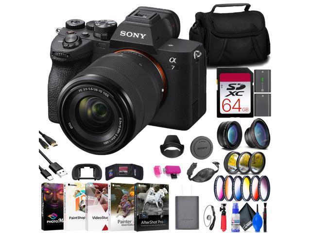 - Bundle Items Include: 1 x Sony a7 IV Mirrorless Camera with 28-70mm Lens, 1 x 64GB Memory Card, 1 x 3 Piece Filter Kit, 1 x Wide Angle Lens, 1 x Telephoto Lens, 1 x Graduated Color Filter Kit, 1 x Tulip Lens Hood, 1 x Soft Bag, 1 x NP-FZ100 Battery, 1 x Memory Card Reader, 1 x Corel Photo Software With PhotoMirage, AfterShot, Painter Essentials, PaintShop Pro, and Video Studio, 1 x Micro HDMI Cable, 1 x Flexible Tripod, 1 x Hand Strap, 1 x Memory Card Wallet and more.... An all-arounder that pushes beyond basic, theSony a7 IVdoes double duty with strong stills and video performance. An advanced hybrid mirrorless camera, the a7 IV has the resolution and AF performance that appeals to photographers along with robust 4K 60p video recording for filmmakers and content creators.. Newly developed 33MP Exmor R full-frame sensor features a back-illuminated design that promotes high clarity, low noise, and vivid color rendering. This design benefits working in low-light conditions and works in