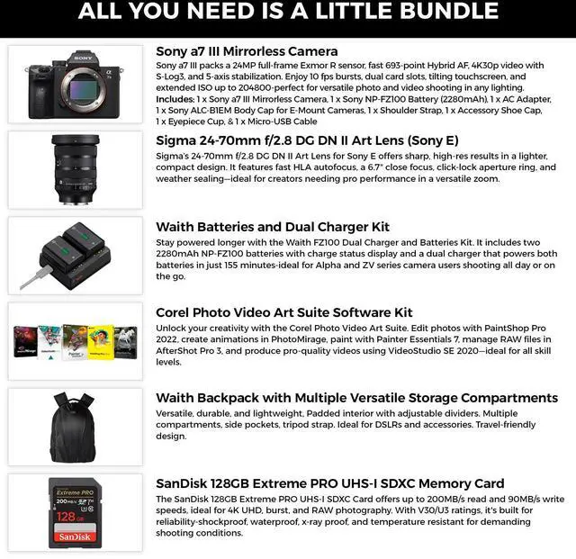 The Sony a7 III is a powerful all-rounder for photo and video. Its 24.2MP sensor, 4K video, and Fast Hybrid AF ensure sharp results in any light. With 10 fps shooting, 5-axis stabilization, and dual card slots, its perfect for creators on the go.