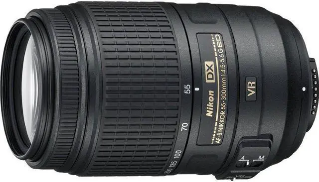 Compact 5.5 x DX-format telephoto zoom lens with High Refractive Index lens element. ED glass and VR II image stabilization is Ideal for capturing distant subjects at athletic events, family pictures, dramatic sunsets, travel and more. Nikon AF-S Nikkor 55-300mm f/ 4.5 - 5.6G ED VR Lens Highlights Sample image take with the Nikkor 55-300mm f/ 4.5 - 5.6G ED VR lens. 5.5 x Telephoto Zoom lens Ideal for capturing distant subjects at athletic events, family pictures, dramatic sunsets, travel and more. Angle of view equivalent to a focal length of 82.5 to 450mm in FX/35mm format D-SLR.