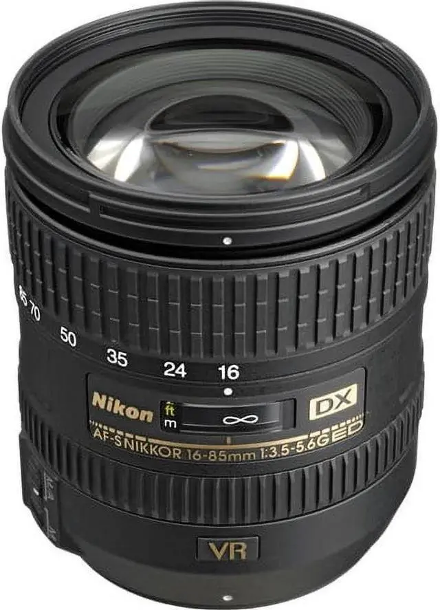 The compact and highly versatile Nikon 16-85mm wide-angle-to-medium telephoto zoom lens is ideal for a broad range of shooting situations, from interiors and landscapes to portraits. The lens is equipped with Nikon's Vibration Reduction technology, which minimizes the effects of camera shake. This allows handheld shooting at up to four shutter speeds slower than would otherwise be possible, producing dramatically sharper images at distance. The lens also offers two extra-low-dispersion (ED) glass elements, which minimize chromatic aberration to produce superior sharpness and color correction, and three aspherical lens elements, which virtually eliminate coma effects and other flaws, even when used at the widest aperture.