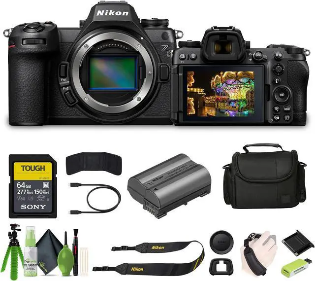 The EVF boasts 5, 760, 000 dots and 4000 nits brightness, offering clear viewing in sunlight and 120 fps refresh rate for smooth previews. A durable, lightweight body with premium weather sealing houses dual CFexpress Type B and UHS-II SD card slots. Connectivity options include USB-C, HDMI, and dual-band Wi-Fi/Bluetooth for seamless file transfer and remote control. Whether shooting portraits or cinematic films, the Nikon Z6 III delivers exceptional performance and precision, making it the ultimate choice for professionals who demand excellence from their gear.