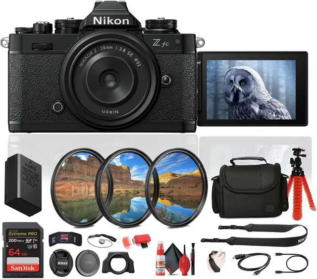 The 3-inch vari-angle touchscreen provides flexibility for composing shots from unique angles, while the 2.36 m-Dot OLED electronic viewfinder offers a sharp, clear view for precise framing. With built-in Wi-Fi and Bluetooth, sharing and controlling your shots from afar is effortless. The included NIKKOR Z 28mm f/ 2.8 SE lens delivers sharp, wide-angle imagery, ideal for both daily photography and creative projects. Compact, stylish, and powerful, the Nikon Zfc is the ideal camera for those looking to elevate their photography and videography experience.