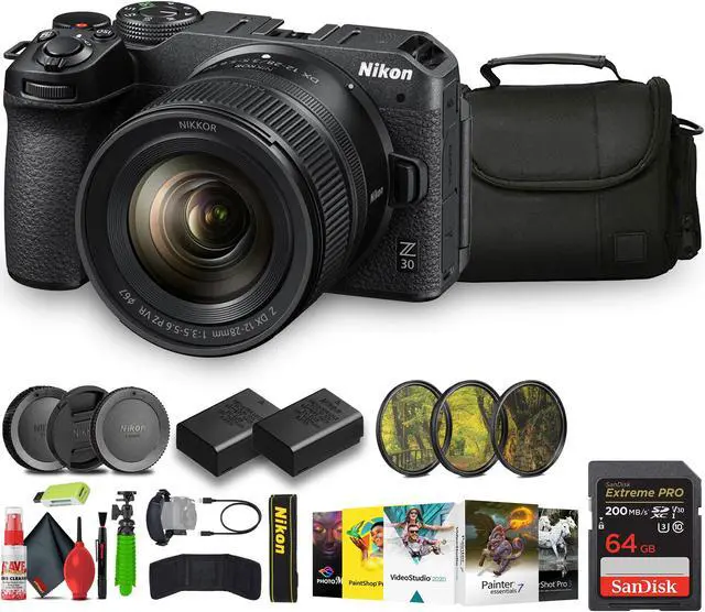The Z30 boasts a hybrid autofocus system combining phase-detection and contrast-detection for fast, precise focusing in both photo and video modes. Enjoy features like Eye Detection AF and subject tracking, ensuring sharp focus on subjects' eyes or tracking faces, people, dogs, and cats across the frameperfect for portraits and action shots. Compact yet powerful, the Nikon Z30 Mirrorless Camera with 12-28mm Lens embodies Nikon's commitment to delivering advanced technology in a user-friendly design. Whether you're documenting adventures, creating compelling content, or exploring creative possibilities, the Z30 empowers you to capture every moment with precision and clarity.