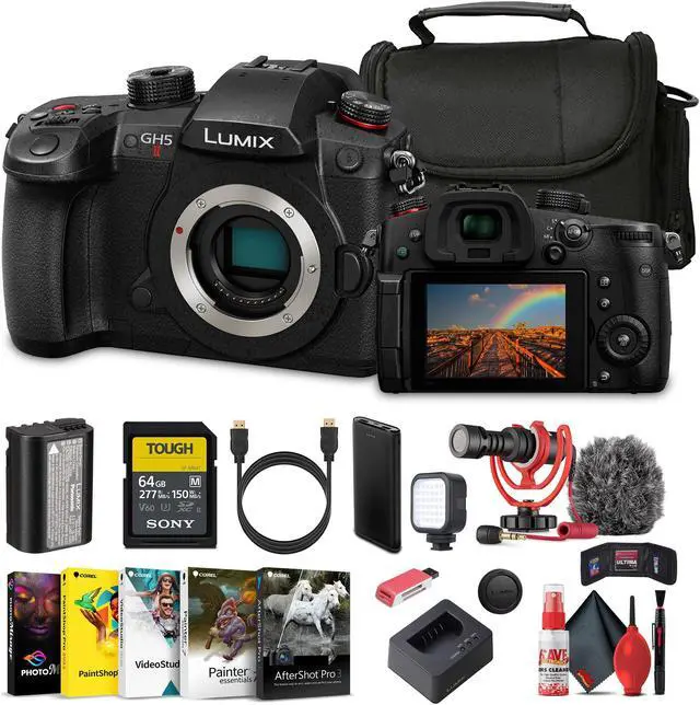 4:2: 2 at 30p, offering unparalleled detail and color accuracy. The preinstalled V-Log L simplifies color grading, aligning perfectly with VariCam-series cameras for seamless multi-camera setups. Enhanced 5-axis Dual I. S. 2 stabilization compensates for 6.5 stops of camera shake, delivering sharp, clear shots even in challenging conditions. With its 3'' 1.84 m-dot rear TFT LCD and high-resolution OLED Live View Finder, the GH5 II ensures flexible framing and easy navigation. The 225-area Depth-from-Defocus autofocus system, powered by deep learning technology, excels in tracking fast-moving subjects, making it ideal for wildlife and action photography. Built for durability, its magnesium alloy body is splash, dust, and freezeproof. Whether for live streaming via the Lumix Sync app or high-speed 6K PHOTO mode, the Panasonic Lumix GH5 II is the ultimate tool for today's creators.
