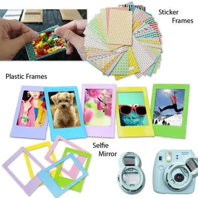 Material: PVC (Plastic) hard cover and transparent plastic slides as photo cover pages inside.? 20 pack sticker frames to add color to your favored captures? 5 Colorful Frames specially designed for Mini Instant Photos? 4 Colorful filters (Blue, Green, Red and Orange) for capturing pictures in a unique colorful style? Camera decor sticker for Fujifilm Instax mini 8 camera - provides good-looking appearance and compliments the Instax mini 8 cameras. (color in picture might show diffirent then the Actual color, actual color may vary)? Quality photo microfiber cloth Extremely fine lint free microfiber leaves zero scratches, streaks or marks. Safe for all surfaces and lenses.